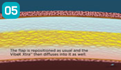 리보플라빈 용액이 각막조직에 흡수됩니다.